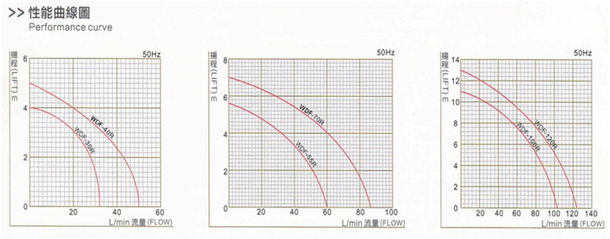 | WDF-40R | G ¾ | 43 | 4.6 | 4-22 | 0.8 | 65 | 1-220v, 3-220v, 3-380v | 50/60 |